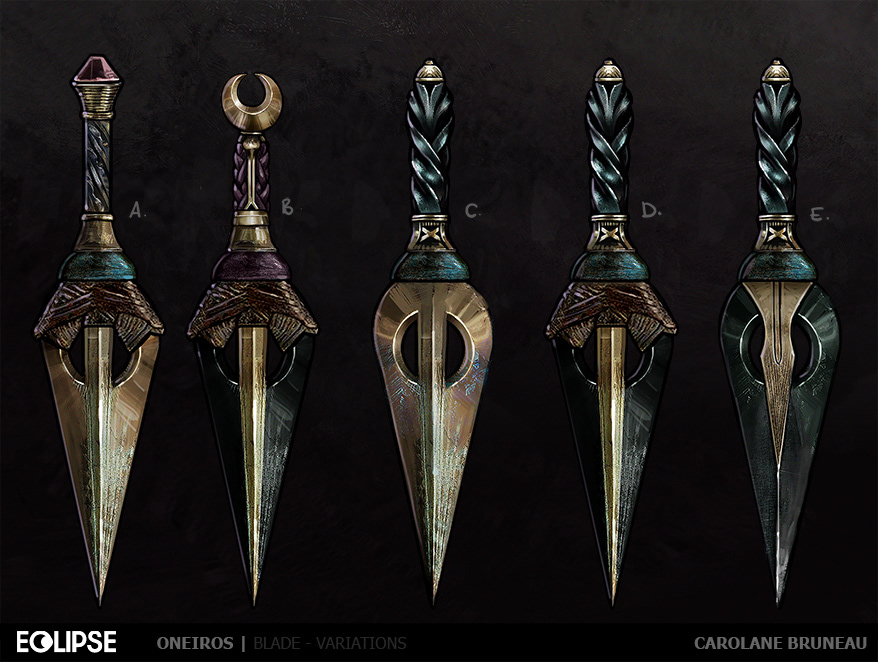 Oneiros are special blades used by Umbra Bellators. In Ancient Greek, Oneiros means "dream" - Referring to their personnification in the mythology.